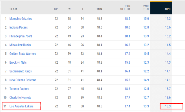 如果湖人的磨合足够顺利,他们的快攻得分有望明显提升,甚至冲击联盟榜首的位置。
