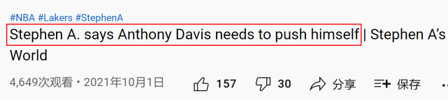 节目的最后,史密斯说:“如果戴维斯真的想从威斯布鲁克身上得到激励,他要做的就是看看对方的球衣号码。0号!AD,这应该成为你这个赛季的目标,零缺席。你能做到这一点,湖人就能冲进总决赛。巴克利也不会用street clothes(便服)来称呼你。”