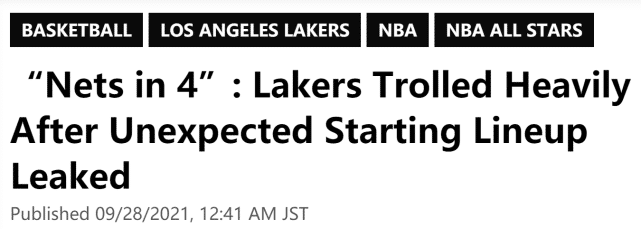 来源:24直播网09-29 11:1724直播网9月28日讯 ,名记查拉尼亚报道称,浓眉新赛季将成为湖人的首发中锋,其余四位首发预计是詹姆斯、威少、埃灵顿和阿里扎。这一报道引起球迷的热议,美媒称不少球迷吐槽这套阵容,甚至有球迷喊出篮网将在总决赛4-0横扫如此首发的湖人。