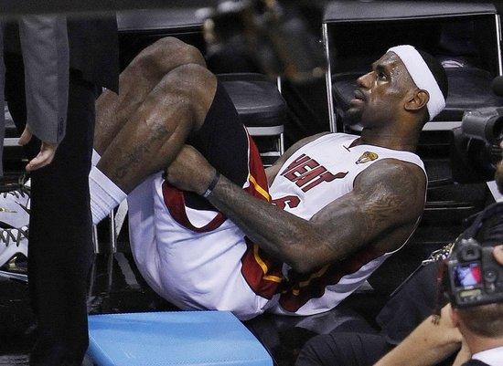 这个具体情况未知,美媒可能指的是当时詹姆斯有出线抽筋的情况,但相比其他几位受伤的情况可能没那么严重!但是14年的热火实力的确不如马刺,波波维奇的战术使用让三巨头打得很难受,。