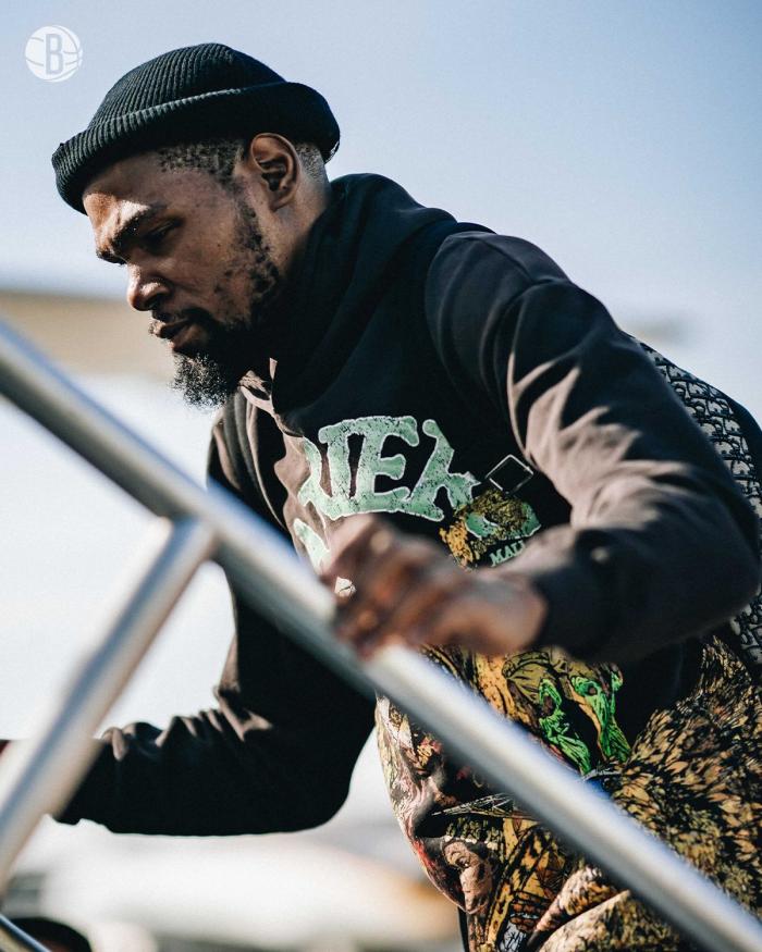 杜兰特身穿黑色连帽卫衣,也是背着双肩包,戴着一顶黑色小绒帽;登上飞机时,杜兰特表情专注显得很深沉,新赛季是杜兰特职业生涯第15年,经过休赛期的调整,他已经准备好了带队冲击篮网队史首冠。