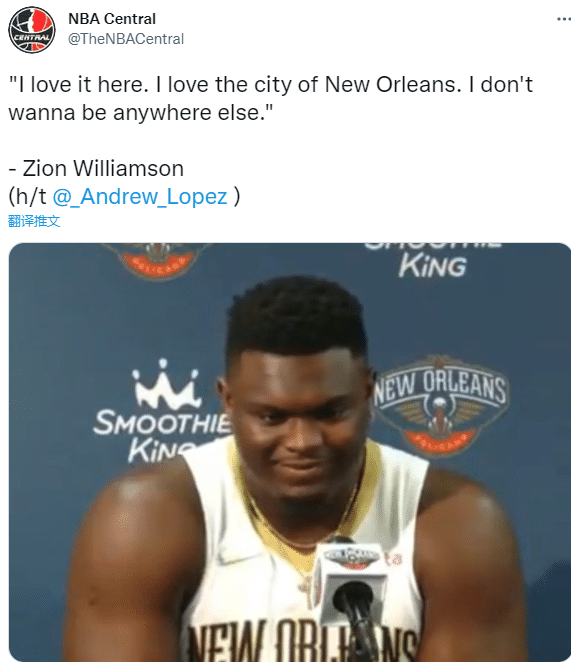 锡安还表示:我爱这个地方,我爱新奥尔良这座城市,我不想去别的地方。