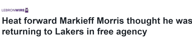 否认归否认,但大莫里斯也透露自己原以为可以留在湖人继续效力。“我真的没预料到(会离开湖人),有时候就是生意。关于这件事,我没太多可以说的。我原以为自己会回到湖人,但我并不在球队的计划中,有时候就是这样。”