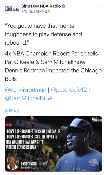 近日曾经的NBA著名球员帕里什就在一档节目当中说出了一个让不少人都十分震撼的观点,他认为乔丹的第二次三连冠都是因为拥有罗德曼的帮助,并且认为如果没有罗德曼的话,你们乔丹和皮蓬什么都赢不了。因为他觉得罗德曼专注于防守端,而且很擅长防守,是整个联盟四五年时间的篮板王。而且他还觉得罗德曼拥有十分强硬的意志,他的态度让整支球队都变得更加好了。