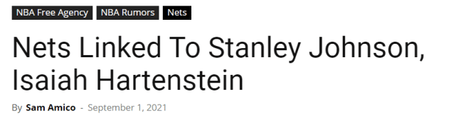 跟队记者Matt Brooks调侃道:“带回泰勒-约翰逊,签下斯坦利-约翰逊,通过交易去得到卡姆-约翰逊(太阳),再加上队内的詹姆斯-约翰逊和阿利兹-约翰逊,我们可以组一个约翰逊阵容了。”