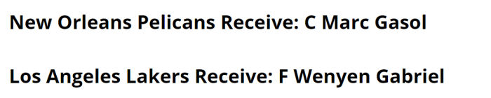 怎么看,湖人都没有强烈意愿再和小加合作一个赛季。于是美媒《nbaanalysis》表示湖人与其白白失去小加,倒不如用他交易来年龄有活力的侧翼锋线,比如鹈鹕前锋加布里埃尔。