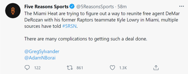 热火尝试同时得到洛瑞德罗赞!欲造四巨头再冲冠 湖人美梦落空?