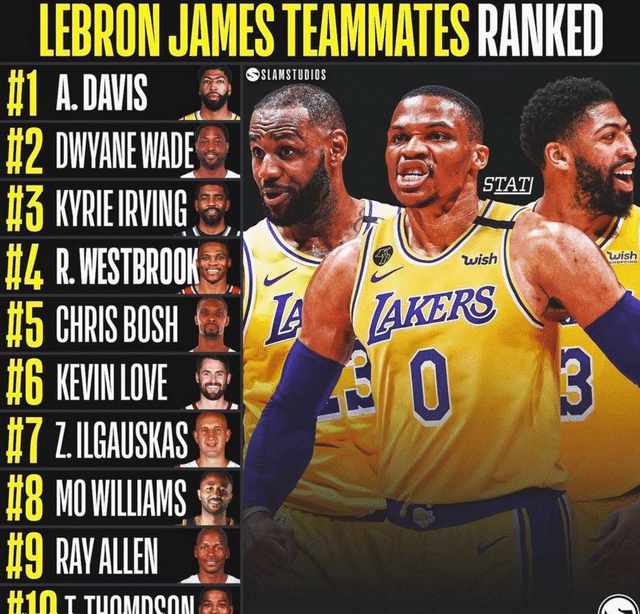 美媒排詹姆斯生涯十大最佳队友:威少仅第四,戴维斯力压韦德欧文!