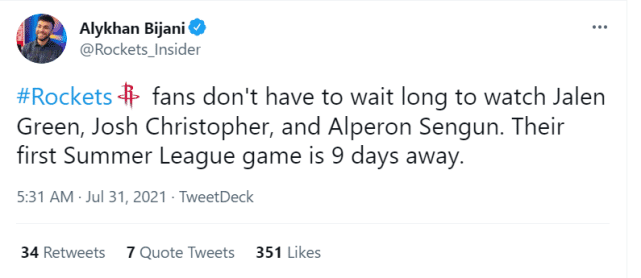 对于火箭的这些新秀来说,他们不用等待太久就有出战的机会了。拉斯维加斯夏季联赛还有9天就将开启,火箭将在8月9日迎来第一个对手骑士。格林有机会和探花秀莫布里过过招。