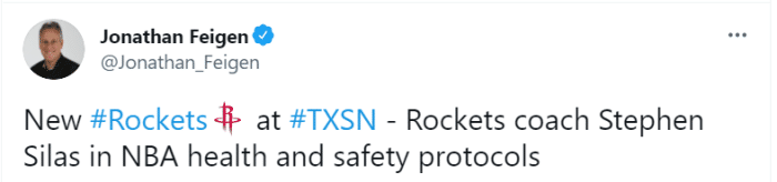 来源:24直播网07-31 09:5624直播网讯 北京时间7月31日,休斯顿火箭召开了新秀见面会,除了正在征战奥运会的加鲁巴,其余三位被火箭选中的首轮秀都正式亮相休城。总经理斯通对三位新秀进行了逐一介绍,不过主帅塞拉斯并未来到现场。火箭记者费根报道称,赛拉斯因触发健康安全协议被隔离。