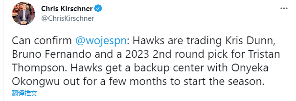来源:24直播网07-31 09:3724直播网讯 北京时间7月31日,NBA又一笔交易达成,据ESPN名记沃纳罗斯基报道,凯尔特人把特里斯坦-汤普森交易到老鹰,得到克里斯-邓恩、布鲁诺-费尔南多和一个2023年次轮选秀权;绿军1换3送走TT,这是他们休赛期第二笔交易,赛季结束是绿军把沃克交易到雷霆。