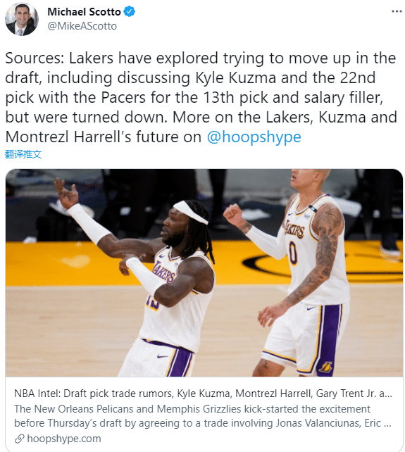 26岁的库兹马是17年首轮第27号秀,去年夺冠之后他和湖人签下3年4000万美元的新合同;湖人积极兜售库兹马的最大原因应该是想释放更多的薪资空间,为后续引援操作做准备;比如洛瑞、德罗赞以及丁威迪等人都是湖人引援目标。