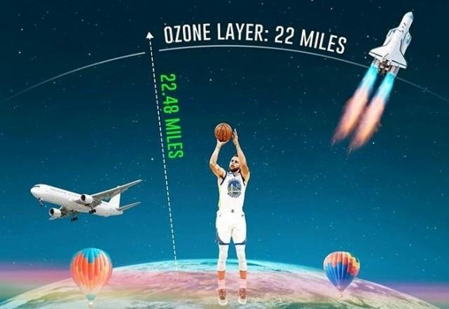 24直播网讯 北京时间7月25日,美媒clutchpoints晒图公布了一项有趣的数据,勇士球星斯蒂芬-库里生涯投篮命中的总距离达到22.48英里(约36178米),而地球表面的臭氧层高度大概是22英里(约35405米)。美媒调侃,库里的进球总距离已经可以冲破臭氧层了。