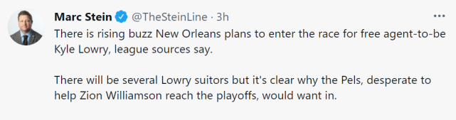 美媒报道称,猛龙也有可能和洛瑞续约,但要面对大量的竞争,除了鹈鹕,热火和费城也有意获得这位35岁的后卫。