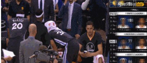 此时有趣的一幕出现了,一个拿着毛巾蒙着头的家伙,突然冲出来,抓住了空中的球,把它扔进了5000美元的桶里面,随后又迅速的转身来到教练的身边听取战术,似乎这一切根本没有发生过,这个家伙就是斯蒂芬库里。