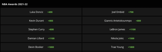 新赛季MVP赔率出炉!东契奇居首詹姆斯第六,杜兰特库里并列第三