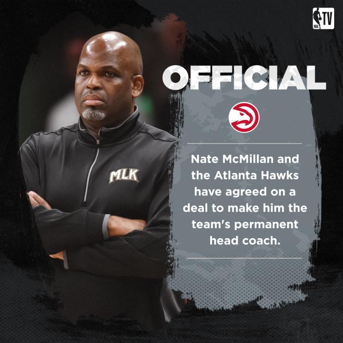 20-21赛季,由于战绩不佳老鹰中途解雇劳埃德-皮尔斯,麦克米兰成为球队临时主教练;14胜20负排在东部第十一名,麦克米兰执教后带队拿到27胜11负的战绩,最终老鹰一东部第五的身份杀进季后赛。