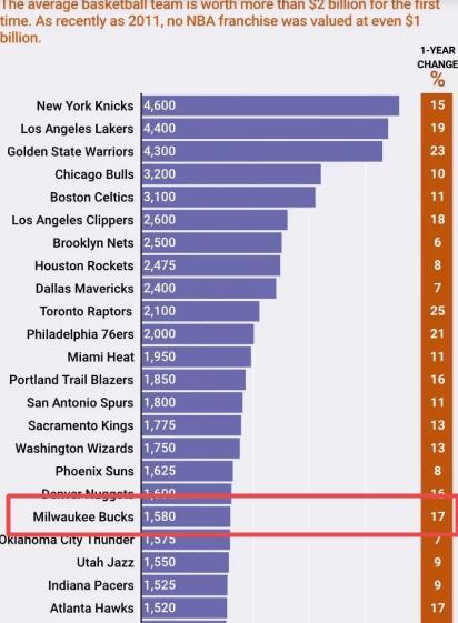 当然这还不是最重要的,随着字母哥的成长,雄鹿队也成为了联盟最受关注的球队之一,在过去的一年,雄鹿队提升了1亿美元,达到了15.8亿美元,也就是说经营了一年球队,卫斯理赚到了奖金1.6亿美元,而且随着重新回到季后赛,一旦雄鹿队夺冠,卫斯理的财富一定有巨大的提升。