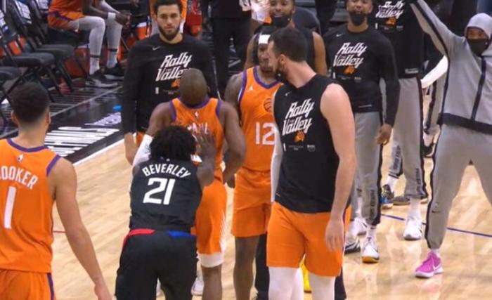 随后,贝弗利在第四节球队大比分落后而不得不暂停期间,双方球员在各自返回板凳席的时候,贝弗利从身后狠狠推倒了保罗,后者被推倒在地,双方球员也围过来,裁判及时介入。最后通过回放,裁判给了贝弗利1次技术犯规并将他驱逐。而保罗队贝弗利说了什么菜如此激怒对方,成为了外界关注的焦点。