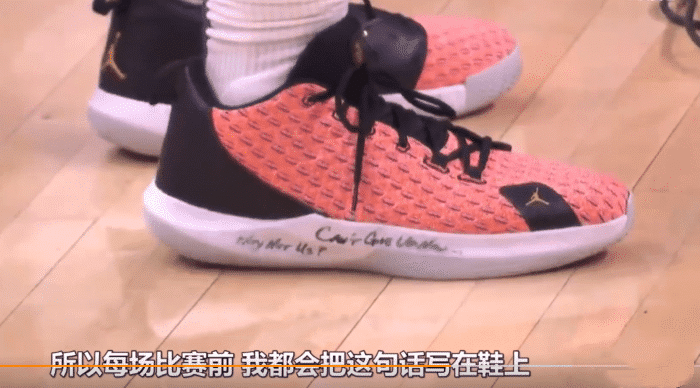 36岁的保罗为何会像小孩子一样,每一场比赛前都会在自己的鞋子上面写上这句话呢?在赛后,保罗也被问到了这个问题,保罗表示自己在火箭队也曾经有机会穿上西部冠军的T恤,火箭队也准备了,可是最终他们没有得到这个机会。