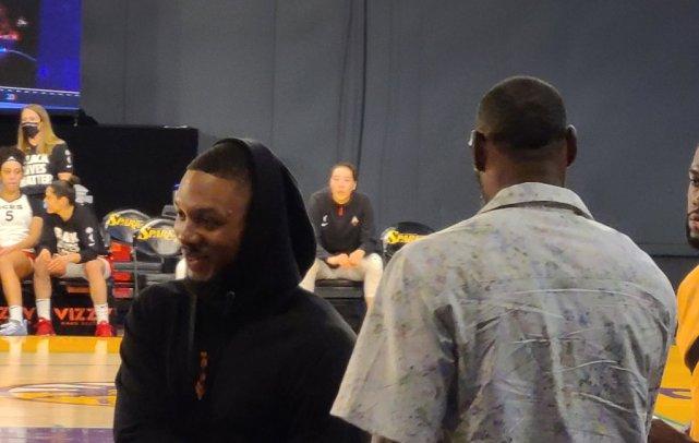 詹姆斯和利拉德都是一身休闲打扮,除了和利拉德碰面打招呼,詹姆斯还在场边遇到了多年好友韦德和侄子扎伊尔。他们也热情相拥,共同观赏WNBA比赛。近来,多位NBA球星现身WNBA赛场,也是为了支持女子篮球运动。