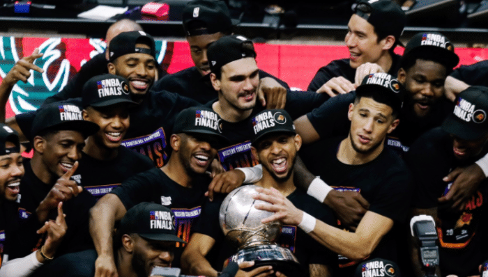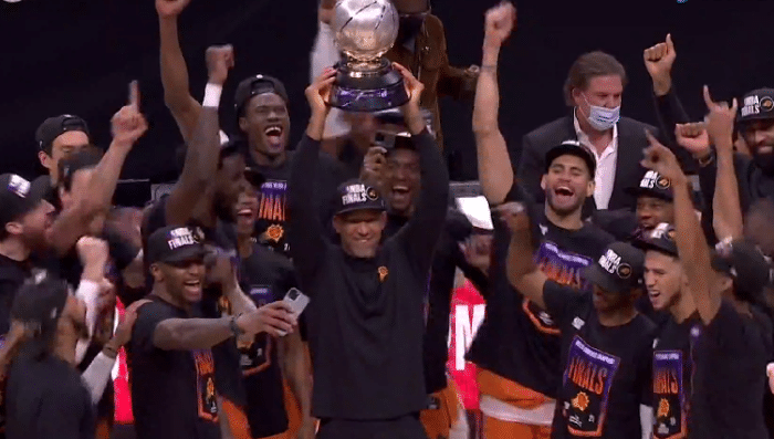 最后也恭喜太阳、保罗、蒙蒂和布克和所有的太阳球迷们,他们经历了去年复赛的8战全胜都无缘季后赛,到今年直接以西部第二名时隔11年晋级到季后赛,同时再不被看好的情况下时隔28年夺得西部冠军,恭喜太阳,也希望保罗和艾顿等人总决赛好运。