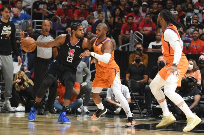 无奈关键时刻,保罗单挑雷吉打成不讲理3+1,随着快船频频打铁,保罗突破上篮得分,外线三分再中直接杀死比赛,打得贝弗利情绪时刻,贝弗利背后怒推保罗被驱逐离场;由于分差太大,快船早早放弃比赛,最终太阳130-103大胜快船,正式晋级总决赛,保罗生涯首次夺得西部冠军。