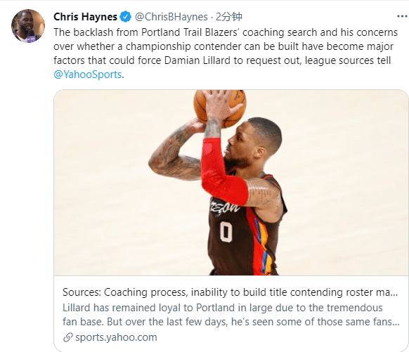 24直播网讯北京时间6月28日,名记克里斯-海耶斯报道,利拉德对开拓者选择新帅的过程中遭受的恶意批评以及对球队是否能够打造夺冠阵容表达了内心的担忧,这已经成为逼迫利拉德申请离队的主要因素;名记更是透露开拓者选帅与利拉德无关。