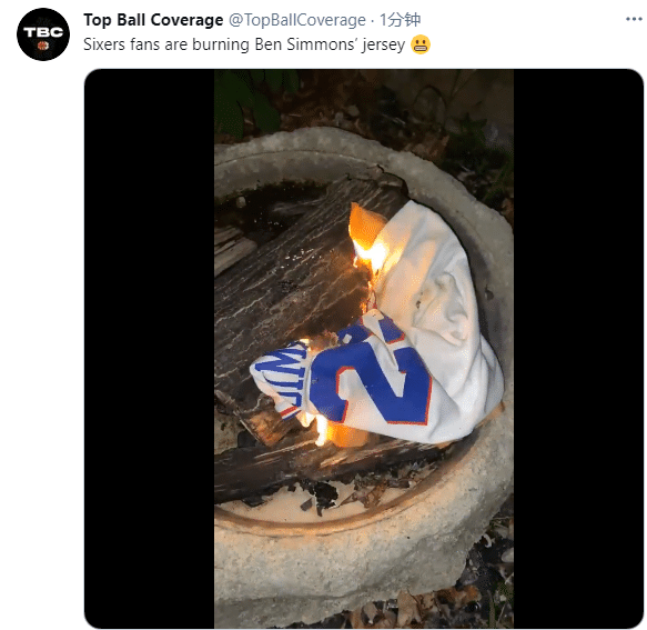 赛后球迷怒烧西蒙斯的25号球衣泄愤,只能说费城球迷已经对他忍无可忍。