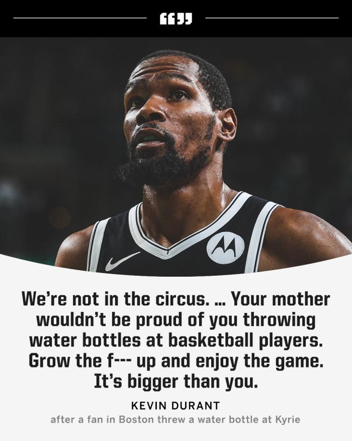 欧文回应被扔水瓶!球迷遭终生禁赛,杜兰特:你妈妈为你感到丢人