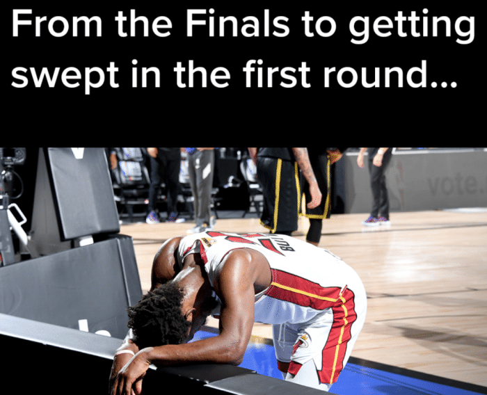 为了让这支热火队找回铁血的感觉,在比赛中,“队魂”哈斯勒姆发表了自己的演讲,甚至他还不惜以摔凳子的方式试图去激活自己的队友,可是当球队核心巴特勒整个系列赛场均只有14+7的情况下,这支热火队根本没有任何的希望。