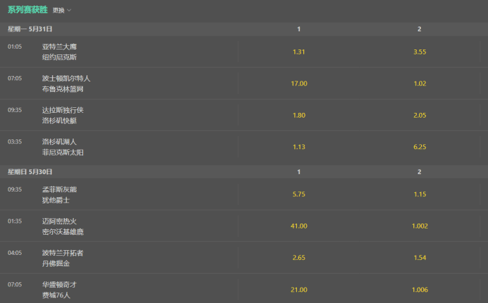 此外,费城、雄鹿、爵士湖人,看起来已经可以准备好半决赛了。雄鹿已经3-0领先,而费城也已经2-0领先。爵士目前和对手打成1-1平,湖人也只是2-1领先太阳。但爵士实力明显强于灰熊,而太阳保罗受伤后基本已经没有抵抗之力。这4组对决,看起来悬念并不大了。