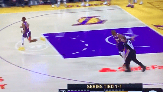意义虽然重大,但是开场后湖人队还是有些慢热,特别是他们的外线投射方面。或许这也和开场后浓眉哥和克劳德之间的小摩擦有关。开场后,浓眉哥盯防克劳德被吹罚犯规,湖人队主教练沃格尔认为克劳德在投篮时有踢腿的动作,申请了挑战。对于这一次挑战,显然沃格尔还是很有信心的,因为当福斯特吹罚挑战失败的时候,沃格尔的反应巨大,他甚至忘了布置战术,直接冲上前理论。