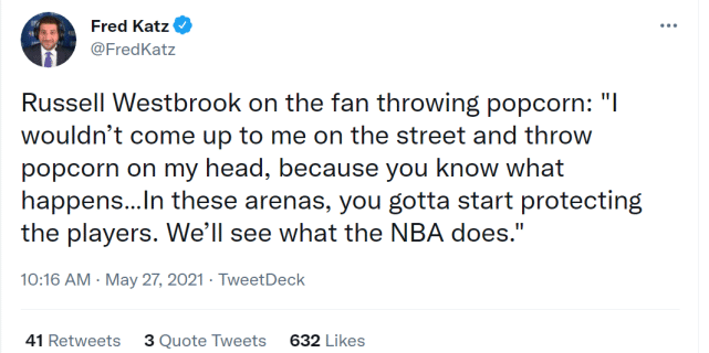 冲上热搜+詹皇力挺!威少回应被扔爆米花:没人敢在街上这样对我