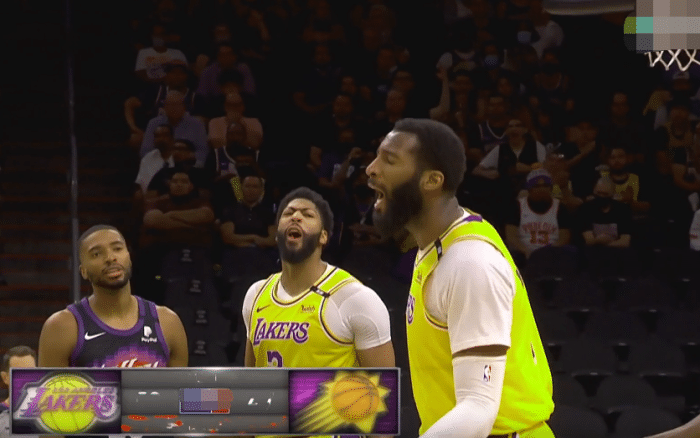 第二节的比赛开始后,詹姆斯下场休息,浓眉带队打,但是这段时间湖人进攻端打得十分混乱,3分钟的时间球队没有得分,而太阳这边进攻保罗带队效果也不佳,3分钟只得到了2分,浓眉造犯规两罚全中帮助湖人打破得分荒,两队在三分线外手感冰凉,怎么投怎么没有,保罗中投命中,这也是他本场比赛投中的第一粒进球,随后湖人喊出暂停,湖人这段时间的进攻十分混乱,4分钟只得到了2分。