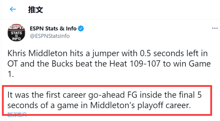 米德尔顿以前总让人觉得他在季后赛习惯性疲软,但今天他也以22中10这样的不错效率拿下27分6板6助攻,尤其加时赛命中制胜绝杀!据ESPN统计,这是米德尔顿生涯首次在季后赛最后5秒命中反超球。