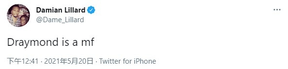 彼时利拉德就发推点评了这个动作,他在自己的个人社媒上写道:“Draymond is a mf。”在彼时的情景下,不少人将其理解为,利拉德怒喷德拉蒙德-格林,对他的防守动作表达不满。