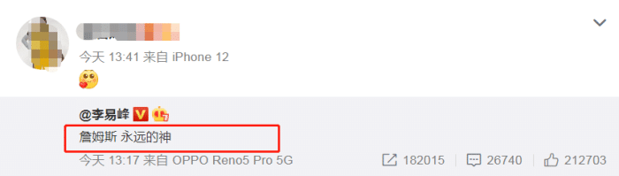 而国内明星李易峰也是篮球爱好者,他和郭艾伦的关系很不错。在湖人和勇士的比赛过后,李易峰用7字评价詹姆斯表现,“詹姆斯,永远的神”。毫无疑问,乔丹是90年代的统治者,而詹姆斯就是21世纪至今最伟大的球员。