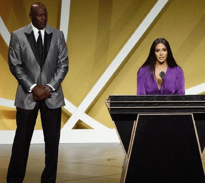瓦妮莎的大女儿娜塔莉亚代替科比穿上了名人堂夹克,她没有参加颁奖典礼,瓦妮莎在社媒上透露,娜塔莉亚去参加了高中毕业舞会,所以,没有去名人堂颁奖典礼现场。