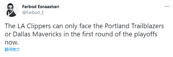 简单来说,无论最后几场比赛的结果如何,无论快船排在西部第三还是西部第四,他们首轮都100%不会碰到湖人。