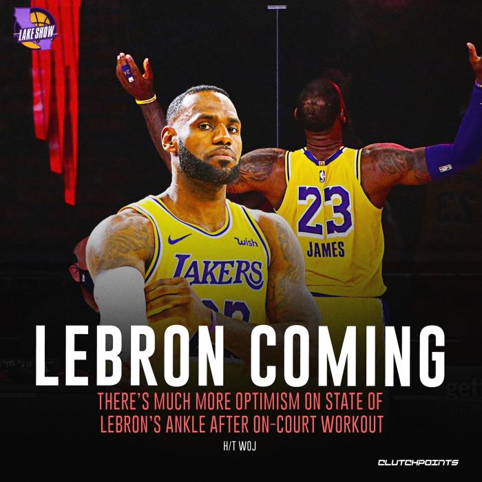 詹姆斯参加了湖人队内的全部训练,据名记沃纳罗斯基报道,詹姆斯的脚踝已经不再疼痛,并且能够做强力空切和高抬腿等动作;《洛杉矶时报》记者更是透露詹姆斯在训练中所展现的加速突破和爆发力令人印象深刻。