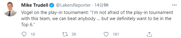 对于附加赛,沃格尔表示:对于我来说,我不担心这支球队打附加赛,我们可以击败任何对手,但我们绝对有希望以西部前六的身份杀进季后赛。