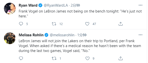 赛后湖人主教练谈到詹姆斯没有现身,过去两场比赛,詹姆斯都没有现身替补席,沃帅表示詹姆斯的缺席与医学无关,直言他只是不在这里,没有透露其他的原因;沃帅还表示詹姆斯昨天参加了队内训练,今天赛前还进行了投篮训练,但詹姆斯不会随队前往客场。