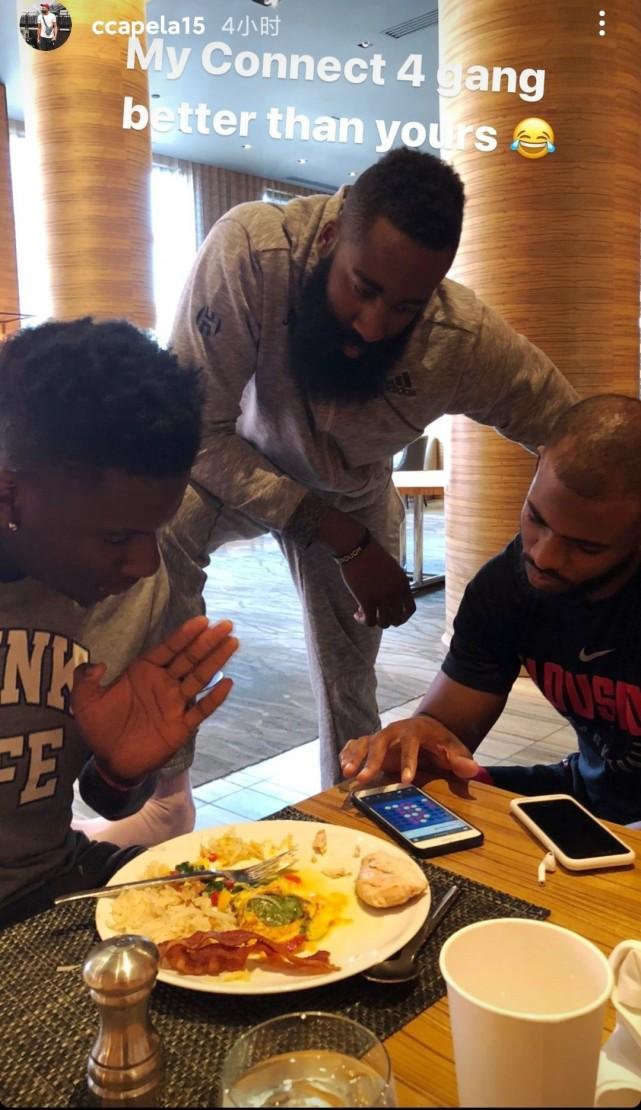 难忘火箭旧时光!卡佩拉晒昔日三巨头合影:哈登保罗陪他玩四子棋