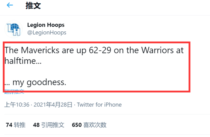 勇士半场仅29分是什么概念?据ESPN统计,这不仅是勇士本赛季半场得分新低,也是科尔执教勇士以来最低的半场得分!最重要的是,如果勇士今天输给独行侠,他们就会被独行侠拉开到3.5个胜场,在只剩下10场常规赛的情况下,基本意味着他们很难以前六的身份直接打入季后赛了!