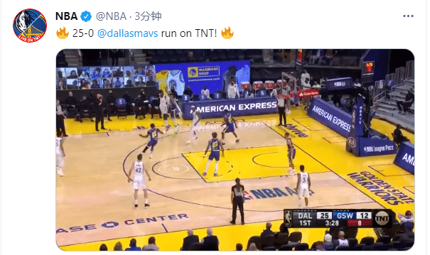 勇士首节最后8分40秒全队17投0中,被独行侠打出25-0攻势引热议,NBA官方以及美媒都发推转发;到了第二节,勇士前5分钟又被吊打,4-11又输7分,分差已经来到31分;此时镜头给到场边的库里,只见库里脸色铁青,落寞而又无奈,半场没打完,比赛就彻底花了吗?