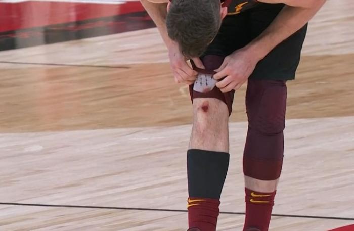 其实这场比赛的关注度并不高,两支对阵球队分别是东部的第十二名和第十三名,威少的球迷也许会因为奇才的排位会关注一下猛龙的近况,但这场比赛出现的一个小插曲却引起了不小的热议,比赛进行到第三节的最后时段,乐福在一次争抢篮板的过程中被对手推搡导致右膝出血,但裁判并未吹罚,而在不到一分钟后的一次后场发球的时候,乐福把自己的消极态度毫不掩饰的展露了出来。