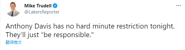 此前浓眉复出的前两场比赛,首战仅打上半场,17分钟10投仅2中拿到4分4篮板,第二战上场28分钟19投5中、三分6中0拿到17分3助攻3篮板;如今湖人解除限时令,不再严格限制浓眉的上场时间。