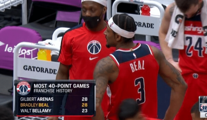 比尔职业生涯的第28场40+,追平了阿里纳斯并列奇才队史第一。再加上他已经成为了全明星的首发,如果可以斩获得分王的话,那么比尔毫无疑问将成为个人荣誉的最大赢家。