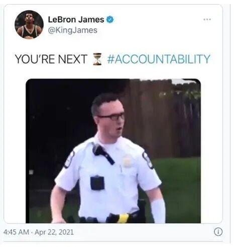 随后老詹也意识到自己发声欠妥随后声明“我讨厌看到黑人被警察杀死。我删除了那条推文,因为它被用来制作更多的仇恨。这不是关于一个警员,而是关乎整个(警察)系统。他们总是用我们的话来制造更多的种族主义。”